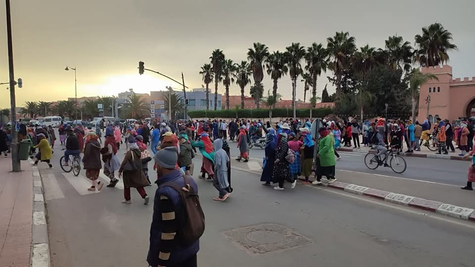 وفي مدينة بيوكرى قرب أكادير نظم عشرات العمال والعاملات احتجاجات واسعة في شوارع المدينة صباح اليوم الاثنين، احتجاجا على أوضاعهم المهنية والمعيشية الصعبة.