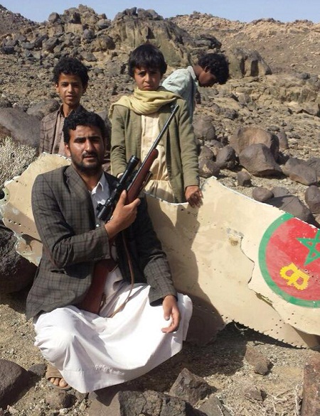 تداول ناشطون على مواقع التواصل الاجتماعي صورًا قالوا: إنها للطائرة المغربية الحربية المشاركة ضمن قوات التحالف العربي، والتي أعلن الجيش المغربي عن فقدانها في الأجواء اليمنية.