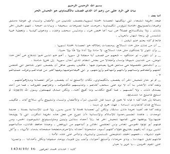ردًّا على مزاعم اتهمت الجيش الحر باستخدام الكيماوي في قصف الغوطتين بدمشق في أغسطس الماضي، أصدر الشيخ عدنان العرعور بيانًا دحض فيه التهم الموجهة للحر، وأكد فيها إدانة نظام بشار الأسد.