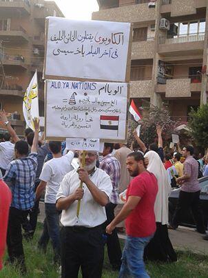 كما رفع آخر لافتة كتب عليها: “الكاوبوي يقتلون الحليف الخائن في آخر الفيلم يا سيسي“.