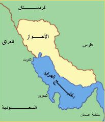 يحدها من الغرب العراق، ومن الجنوب الغربي الخليج العربي والجزيرة العربية، ومن الشمال والشرق والجنوب الشرقي جبال زاجروس الشاهقة الارتفاع والفاصل الطبيعي بين الأحواز وإيران، وهذا يعني بوضوحٍ أنّ إيران ليس لها أيّ ساحلٍ على الخليج العربيّ، الذي بقي حلماً فارسياً لم يتحقّق، إلا باحتلال الأحواز العربية بتاريخ1925م، عندما وقع آخر أمرائها الشيخ خزعل الكعبيّ ضحية مكيدةٍ بريطانيةٍ-فارسية، حين دُعِيَ إلى حفلٍ على متن يختٍ بريطانيٍّ في شط العرب، حيث تم اعتقاله مع مرافقيه من قِبَلِ مجموعةٍ من الضباط البريطانيين والفرس، واقتيد إلى سجنٍ في طهران، فيما بدأت قوات (رضا خان بهلوي) بالهجوم العسكريّ واحتلال (الأحواز) بمساعدةٍ بريطانيّة.