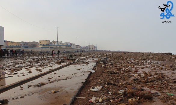 مدّ بحري يملأ الشريط الساحلي لحي سيدي موسى بسلا أتربة وحجارة