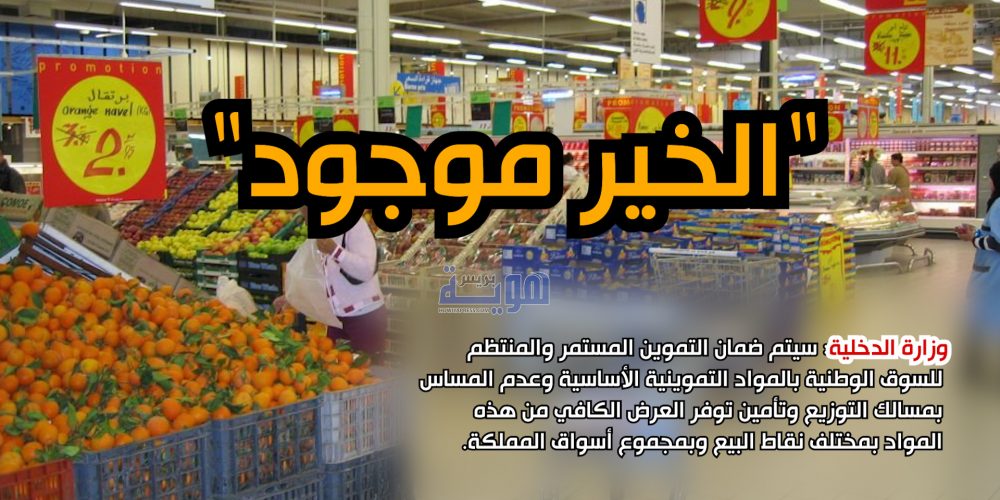 هوية بريس – وزارة الدخلية سيتم ضمان التموين المستمر والمنتظم للسوق الوطنية بالمواد التموينية الأساسية وعدم المساس بمسالك التوزيع وتأمين توفر العرض الكافي من هذه المواد بمختلف نقاط البيع وبمجموع أسواق المملكة.