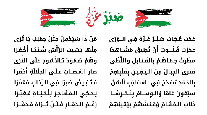 هوية بريس – حسن قرافي سقاكِ الطّلُّ مِنْ عَذَباتِ بانِ بِغَزَّةَ هاشِمٍ رَبْعِ الحِسانِ فلسطينُ البشائرُ قد أظَلَّتْ وطَنَّبَ في مَصَامِكِ نَيِّرَانِ فضيفُ الله يُثْخنُ في عدوٍّ وفي يده الكتائب واليَمانِي...