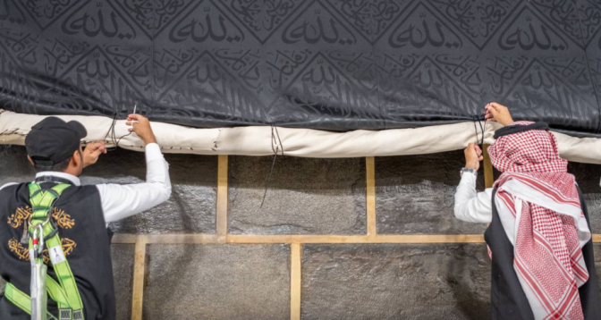 استعدادا للحج شؤون الحرمين ترفع ستار الكعبة