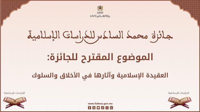 أعلنت وزارة الأوقاف والشؤون الإسلامية، عن تنظيم مسابقة لنيل جائزة محمد السادس للدراسات الإسلامية، وهي جائزة تمنح لمكافأة الأبحاث المنجزة في مجال