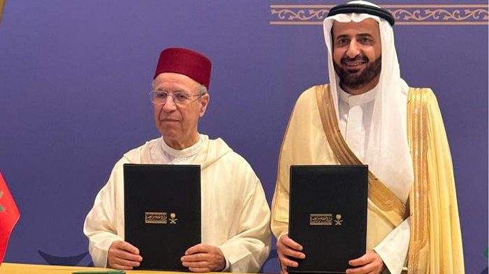 التوقيع على اتفاقية ترتيبات شؤون الحج لموسم 1447هـ بين السيد أحمد التوفيق، وزيرالأوقاف والشؤون الاسلامية والسيد توفيق بن فوزان الربيعة وزير الحج
