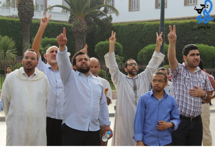 ثم وجهوا تحية مغربية إلى الشرعية المصرية، واستهجنوا أن يصير فلول النظام البائد ثوارا يطالبون بالإطاحة بالرئيس المنتخب؛ بترديدهم لشعار: “يا للعار يا للعار، الفلول صاروا ثوار”.